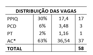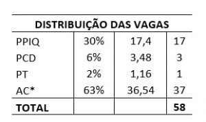 TOTAL DE VAGAS ANUAIS | 28 | 17 | 3 | 1 | 58 |